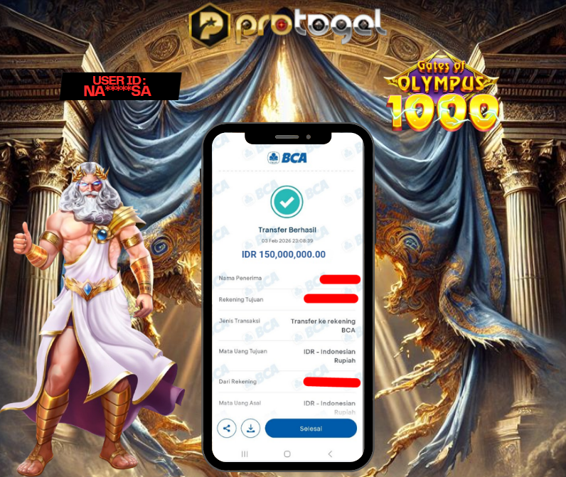 Selamat kepada user na*****sa Telah berhasil mendapatkan hadiah Jackpot pada Permainan Gates Of Olympus 1000 Sebesar Rp. 150,000,000,- dan melakukan withdraw Rp. 150,000,000,- Hanya di PROTOGEL