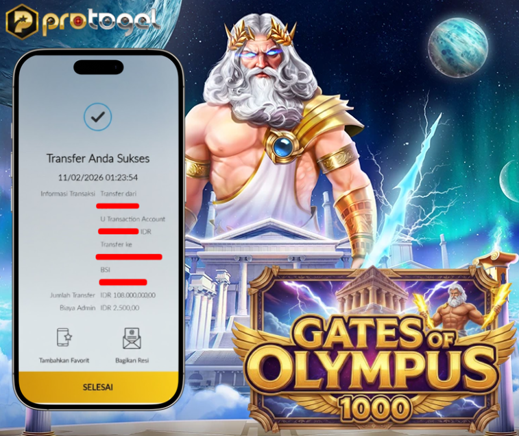 Selamat kepada user rxxxx1 Telah berhasil mendapatkan hadiah Jackpot pada Permainan Gates Of Olympus 1000 Sebesar Rp. 105,000,000,- dan melakukan withdraw Rp. 108,000,000,- Hanya di PROTOGEL
