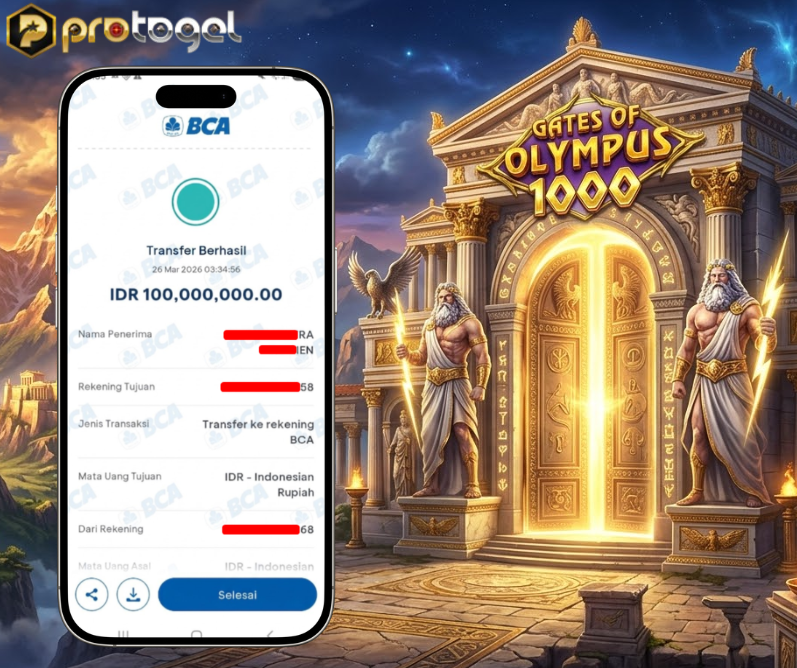 Selamat kepada user wxxxxxx1 Telah berhasil mendapatkan hadiah Jackpot pada Permainan Gates Of Olympus 1000 Sebesar Rp. 104,967,000,- dan melakukan withdraw Rp. 100,000,000,- Hanya di PROTOGEL