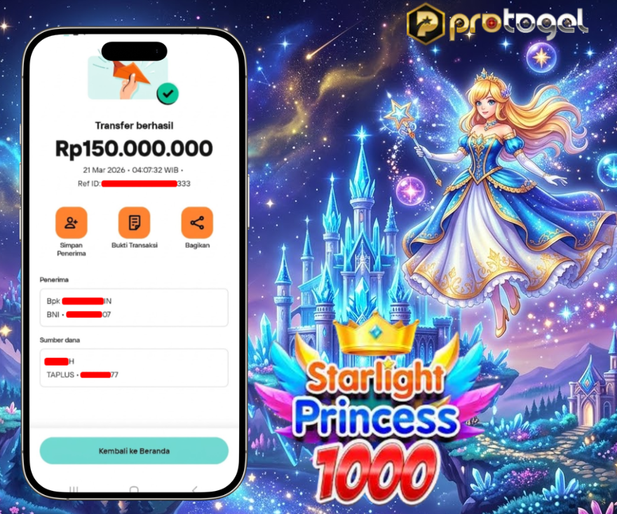 Selamat kepada user rxxxxxx Telah berhasil mendapatkan hadiah Jackpot pada Permainan Starlight Princess 1000 Sebesar Rp. 150,000,000,- dan melakukan withdraw Rp. 150,000,000,- Hanya di PROTOGEL